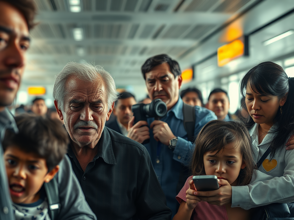 A cena se repete: um senhor enfartando na fila, várias crianças chorando — uma delas com a fralda suja e por trocar — pessoas gritando, xingando, rostos vermelhos suando de pura cólera, um estudante barbudo e sujo dormindo no chão, um executivo falando aos berros ao celular. O voo foi cancelado, e não há expectativas reais de sair do chão. As agentes do aeroporto estão todas descabeladas, tentando conter o ânimo dos mais exaltados e manter a própria sanidade mental.