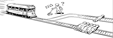 Um bonde descontrolado está em vias de atropelar cinco pessoas amarradas na pista. Contudo, é possível apertar um botão que direcionará o bonde para um percurso diferente. Entretanto, há outra pessoa também amarrada nessa pista. Qual seria a decisão moral?