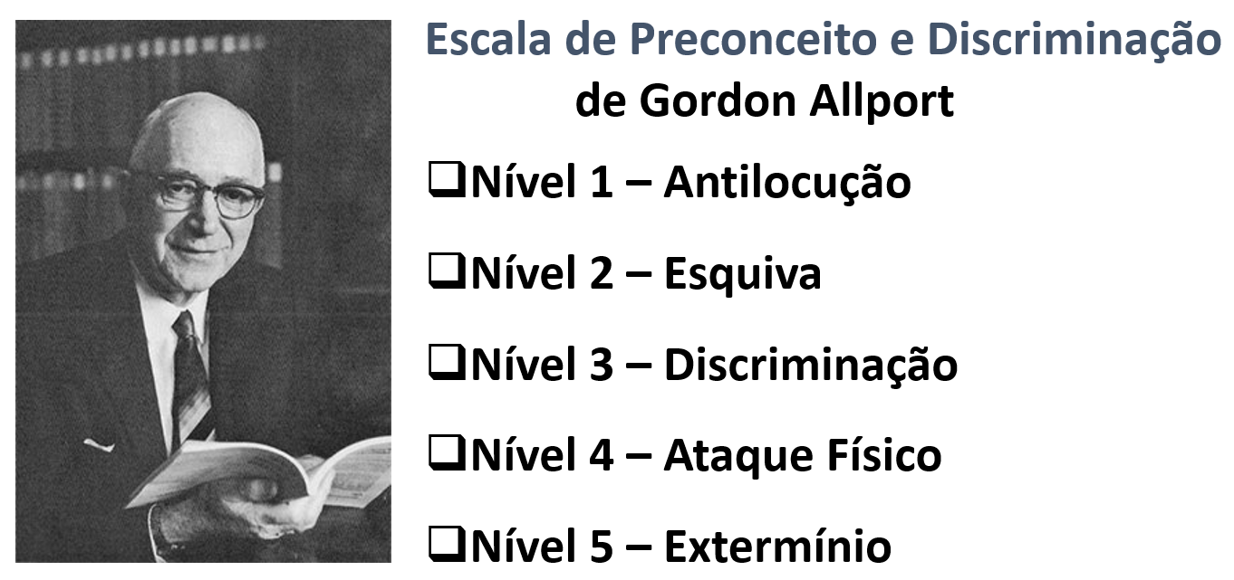 - Nível 2 – Esquiva: evitar contatos, aumentar a distância social e não aceitar relacionamentos com o grupo minoritário.