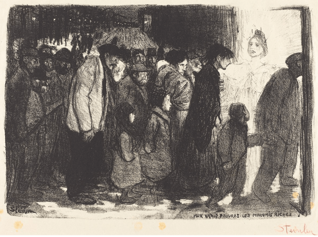 Théophile Alexandre Steinlen, Aux vrais pauvres – Les mauvais riches, litografia, 1894.